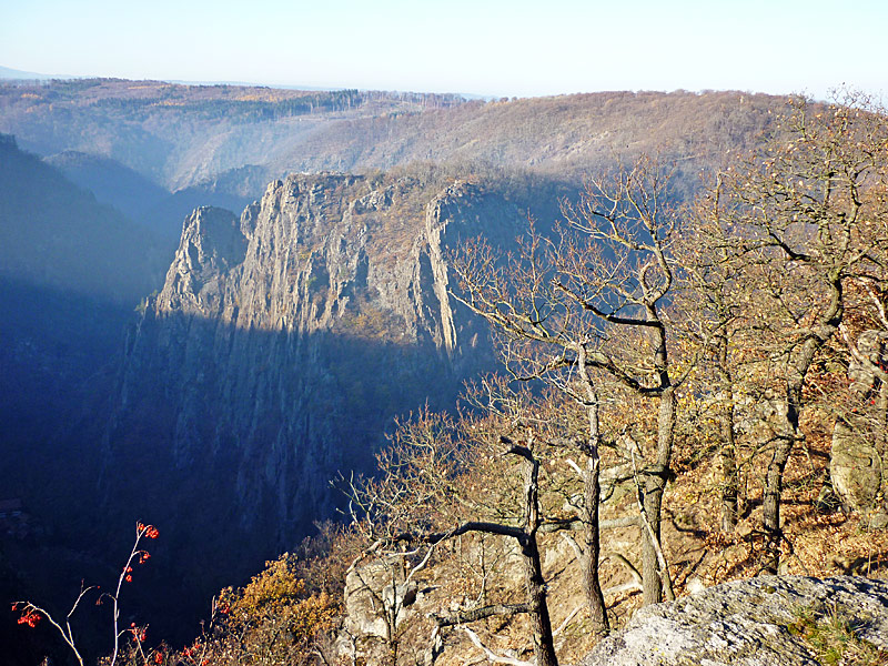 Der Hexentanzplatz ist ein Plateau über dem Bodetal gegenüber der Roßtrappe. Es ranken sich viele Sagen und Legenden um beide Orte. Der Hexentanzplatz soll früher auch ein heidnischer Kultplatz gewesen sein. Auf jeden Fall lohnt es sich dort hoch zu laufen oder zu fahren. Man wird mit einem atemberaubenden Ausblick belohnt.