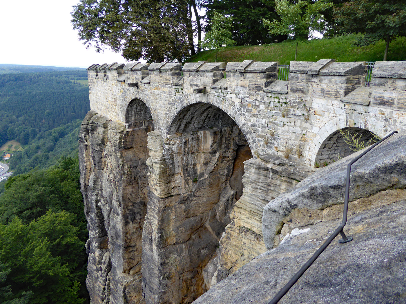Das 9,5 Hektar große Felsplateau, das nach Scherbenfunden schon in der Bronzezeit 1100 v. Chr. besiedelt war, erhebt sich 240 Meter über die Elbe. Der Wallgang der Festung ist 1800 Meter lang und hat bis zu 42 Meter hohe Mauern und Sandstein-Steilwände. Im Zentrum der Anlage befindet sich der mit 152,5 Meter tiefste Brunnen Sachsens und zweittiefste Burgbrunnen Europas.